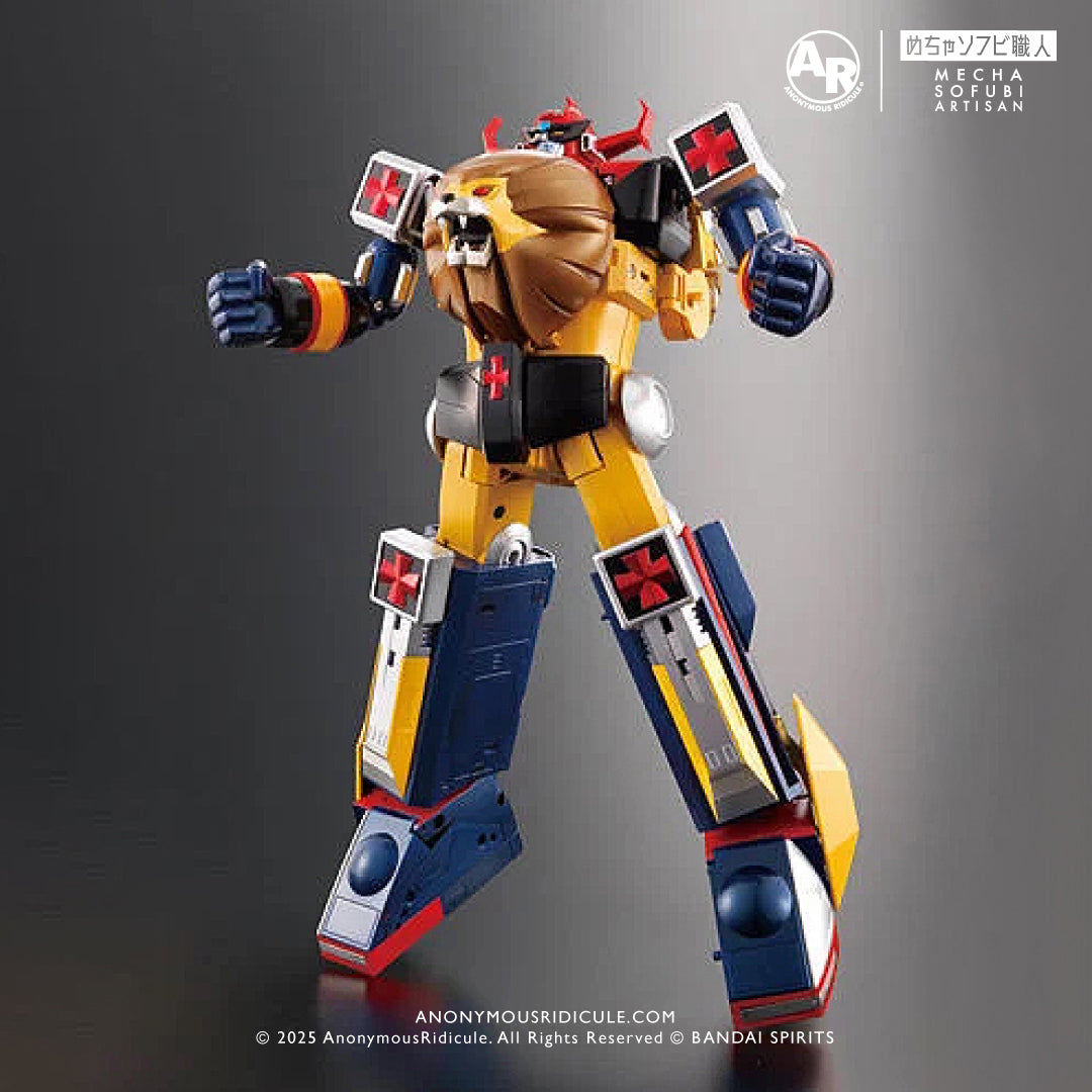 Tamashii Nations is proud to announce the long awaited Soul of Chogokin release of the GX-59 Daltanious diecast robot figure. The 1979-80 Futurei Robo Daltanious anime revolutionized the giant robot genre as the first combining robot to have an animal component as well as the first to feature a lion's head on its chest (mechanical lion Beralios). The latest and most ambitious Soul of Chogokin release to date will capture all the combining and transformation features of Daltanious: Delfighter detaches and re-connects to main robot "Atlaus." Missile firing unit attaches to "Beralios" back. The spaceship, "Gunper" features authentically replicated power hands.